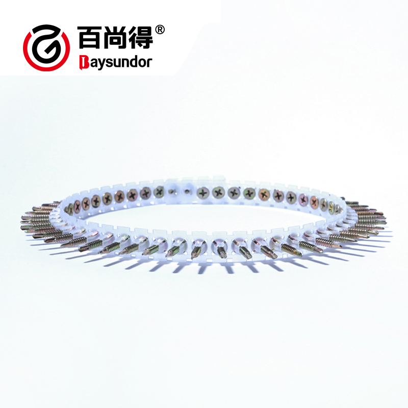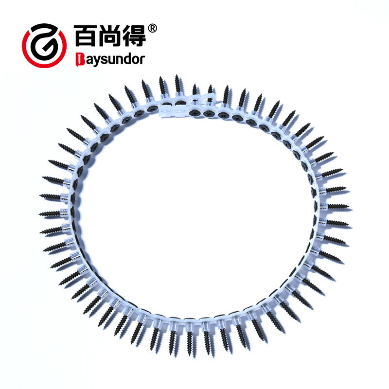 Collated drywall screws are high-efficiency fasteners specifically designed for automated and rapid installation. Composed of high-quality drywall screws and high-strength plastic collation strips, each strip is standardly loaded with 50 screws. They can be used with collated screw guns for continuous feeding, greatly improving the construction efficiency of gypsum board, ceiling and partition wall installation. As a mainstream standard configuration for decoration and prefabricated buildings, they are widely favored by overseas engineering contractors, distributors and bulk purchasers.